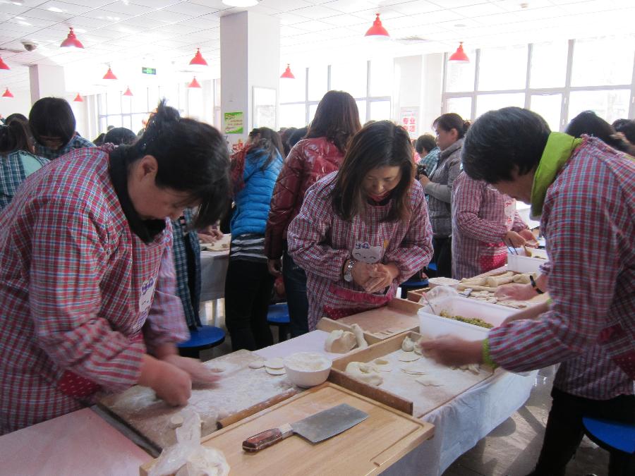 李红霞书记饺子皮擀得既有速度又有风度,大小适中,厚薄正好,获得大家一致好评。马颜平老师和关静老师饺子包得既饱满又美观且速度飞快。比赛现场气氛紧张、融洽、其乐融融。从大家满脸的笑容可以看出本次比赛很受欢迎。