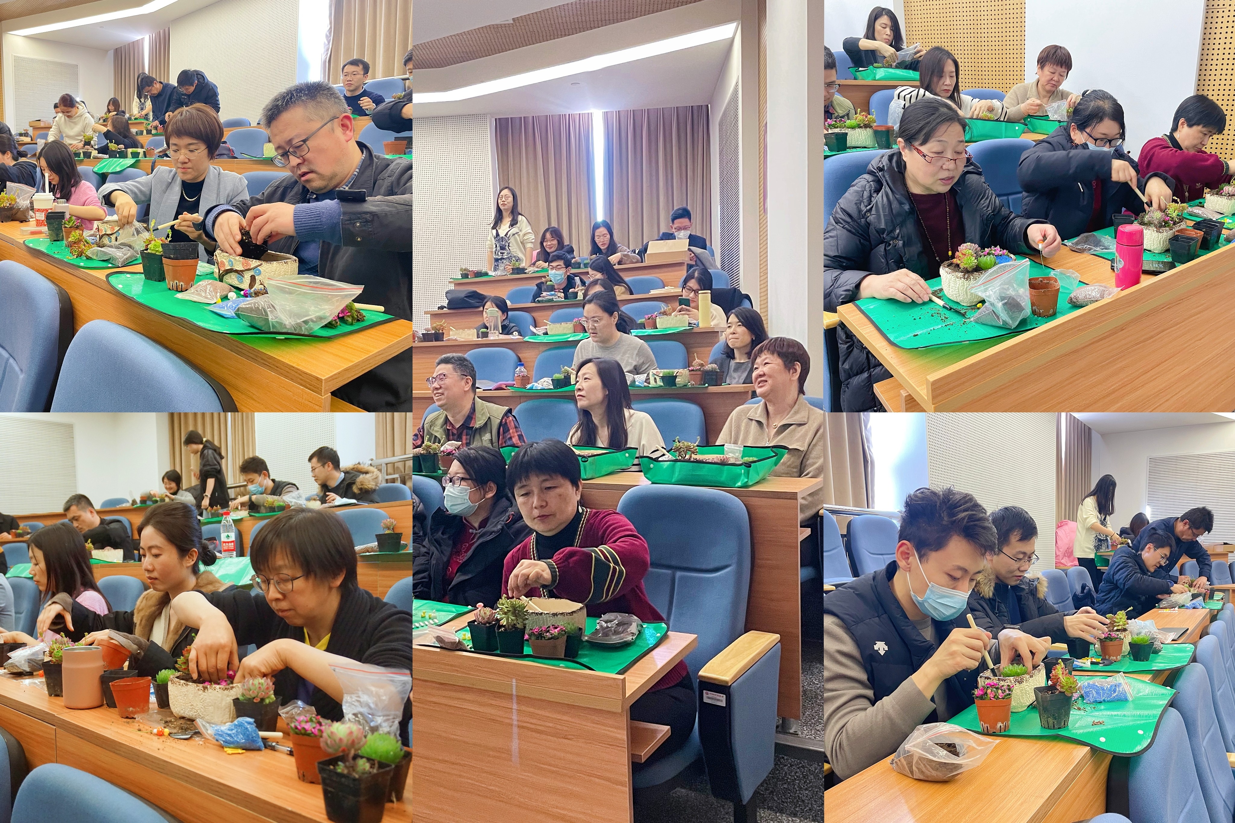 为丰富教职工的业余文化生活,增强教职工的幸福感和获得感,2024年3月6日,财税学院分工会举办“桌面微景观”手工活动。50余位教职工共聚一堂,利用多肉植物、彩石装饰品、多彩花盆等一系列材料,亲手打造微盆景艺术品。学院副院长、分工会主席陈蕾主持活动。