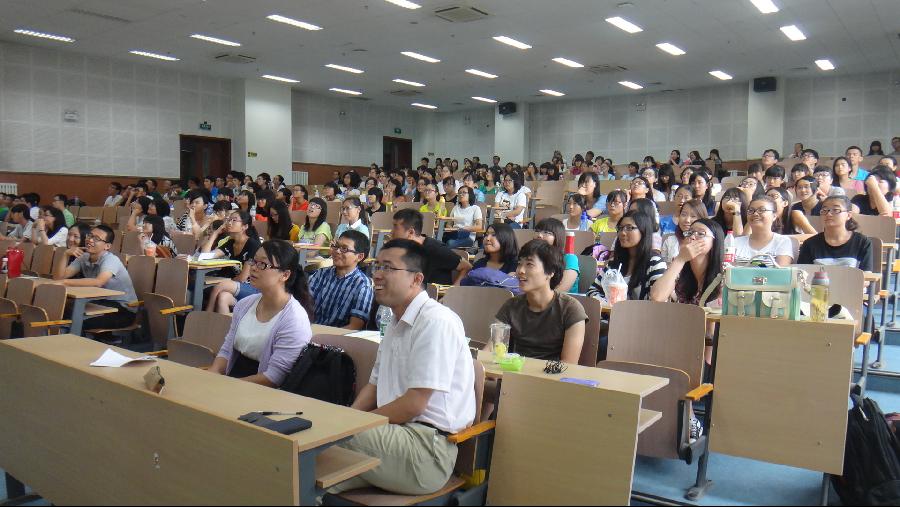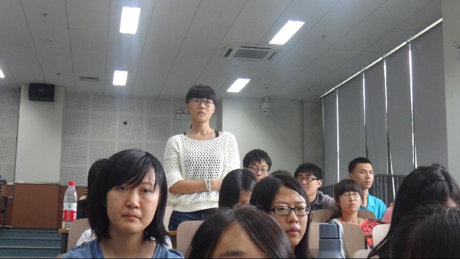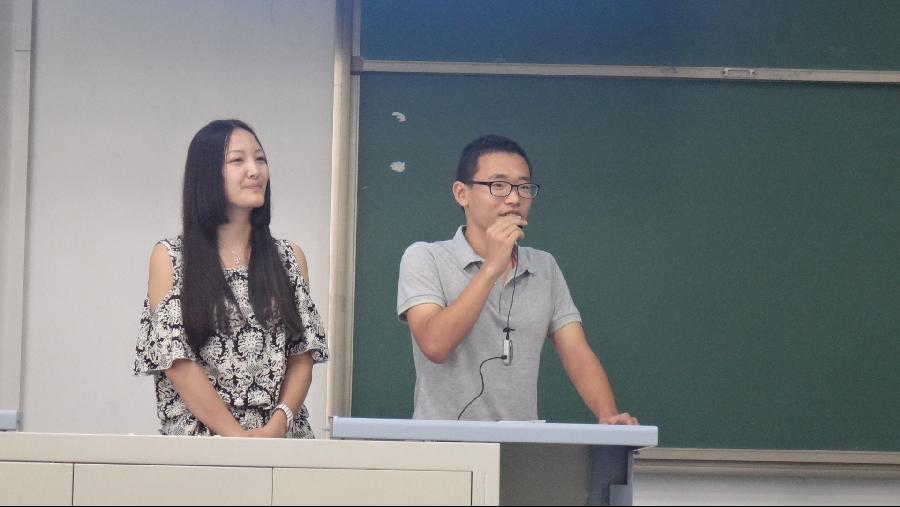 在之后的时间里,上届学生会主席高洪和上届外联部部长贾垒用诙谐的语言向2014级新生们描述了大学的校园生活,并就出国、考研等新生们十分关注的方面提出了自己的建议,之后他们结合自己的亲身经历,给了新生很多帮助。