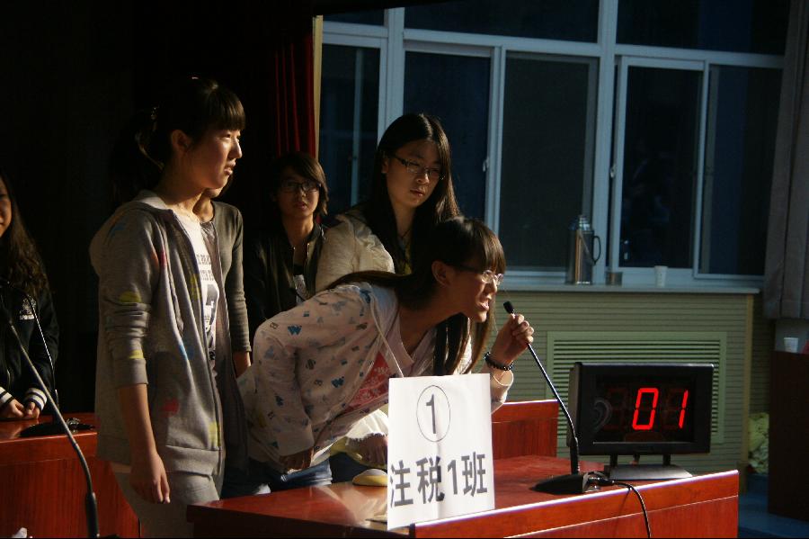 2011级、2012级和2013级代表队均参加点钞大战,点钞手法独特、竞争激烈,点钞过程还要回答主持人随机提出的简单数学运算,现场气氛高涨。
