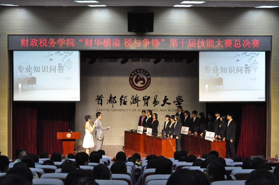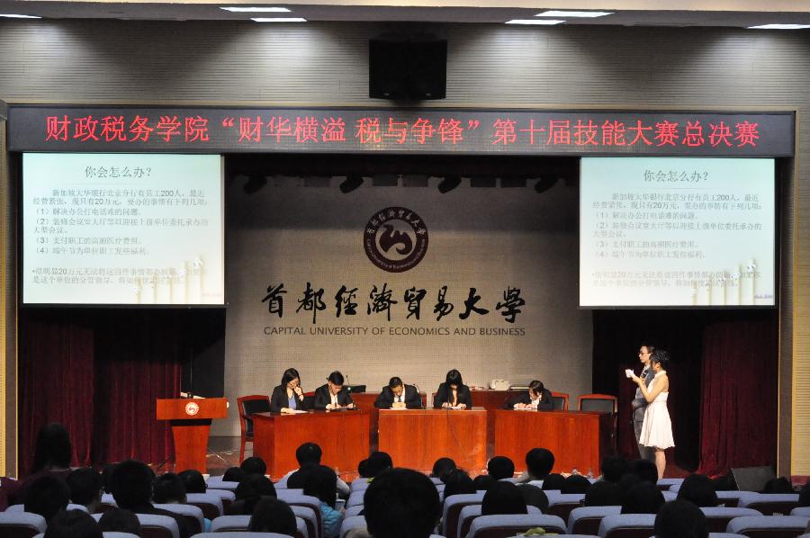 5月8日,禁忌书屋 “财华横溢 税与争锋”第十届技能大赛总决赛在明辨楼220报告厅举办。出席本次大赛的嘉宾有新加坡大华银行北京分行客户经理主管徐一健、客户经理闫洪丹、校团委书记张彤、学院党总支书记李红霞、副书记王珂和2011级、2012级、2013级各班班主任。