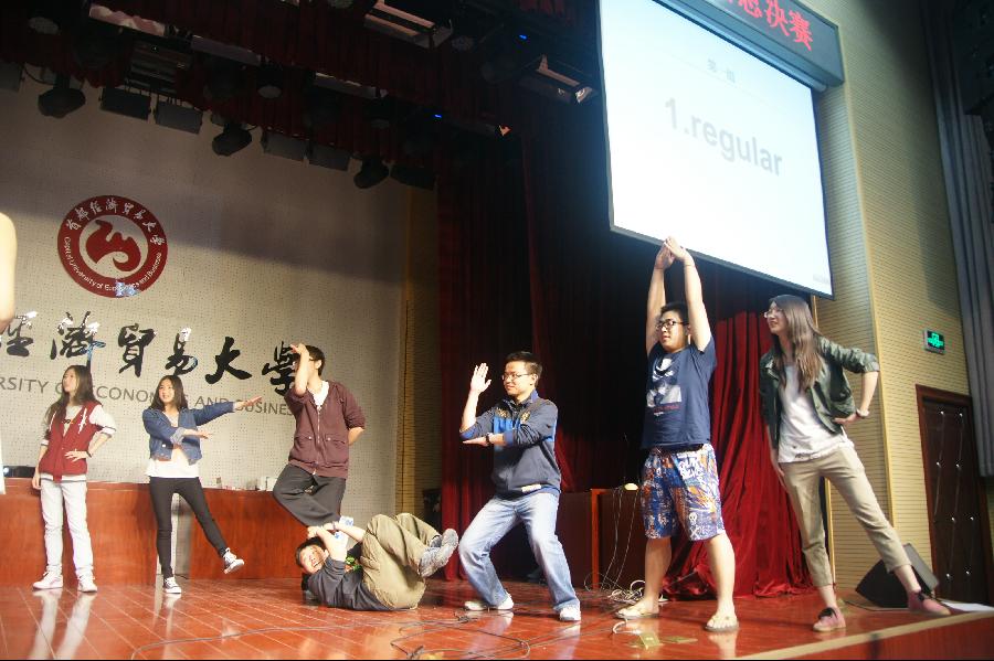 最后一项比赛是人体拼单词,由2011级各代表队参加,面对刁钻的单词,选手们使尽浑身解数来让各自的身体形态趋向于对应的字母。在默契的配合下,每组选手都取得了不错的成绩。