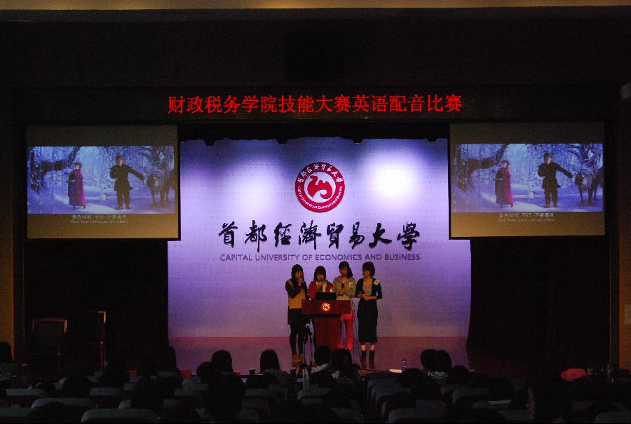 4月16日,禁忌书屋 “财华横溢 税与争锋”第十届技能大赛之英语配音比赛在220报告厅举办。本次活动旨在激发同学们英语学习的热情与积极性,让同学们充分感受到学习英语的乐趣所在。分团委书记高敏丽,2011级财政系研究生李松,2012级财政系研究生孙哲,原分团委副书记李梦,原宣传部大部长王?t肇,学生会主席高洪,分团委副书记鲁方舟,志愿实践部大部长曹谦,宣传部大部长丛博闻、郝苗苗担任比赛评委。