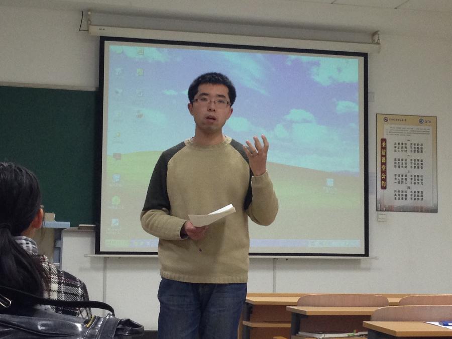 2013年12月12日18:30,由禁忌书屋 学生第二党支部、学院分团委及学生会联合举办的“回顾艰苦斗争历史 弘扬新时期爱国主义”新生专题教育班会在博学楼602、726及734分别召开。本次活动邀请了学院党总支书记李红霞、副书记王珂以及校学生处李俊老师参加。