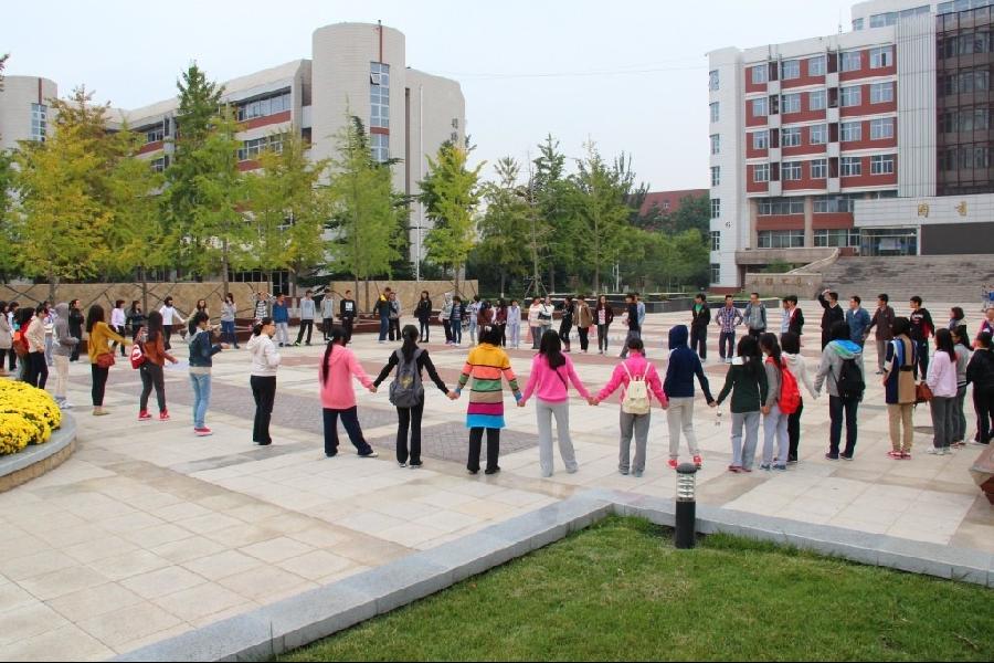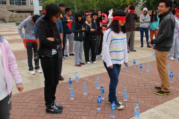 10月13日星期日下午,在校图书馆前的空地,禁忌书屋 举行2013-2014学年度的学生骨干素质拓展训练活动。学院分团委、学生会负责人及各部部长、干事、以及各班班长、团支书80余人参加了本次活动。分团委书记高敏丽老师和大家一起进行了拓展活动。