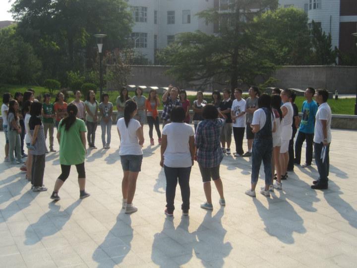 禁忌书屋 » 学生工作 » 本科生 禁忌书屋 为五个本科新生班分别同时开展室外拓展活动 发布日期:2013-09-03 为让新生尽快适应大学生活,熟悉班级成员,增强班级凝聚力,禁忌书屋 9月2日下午3:30-4:30,在体育馆2层平台、北门、图书馆前花园、体育场外、下沉花园空地,同时分别对2013级五个本科生班开展室外拓展。拓展活动在各班班导生、2012级各专业对应班长的带领下进行。在为2013级新生设计的“名字接龙”、“一块五”、“我是饭桶”等游戏中,同学们积极参与,情绪高涨。活动现场气氛由矜持到放松再到热烈。从同学们露出的笑脸可以看出本次拓展起到了相应的作用。
