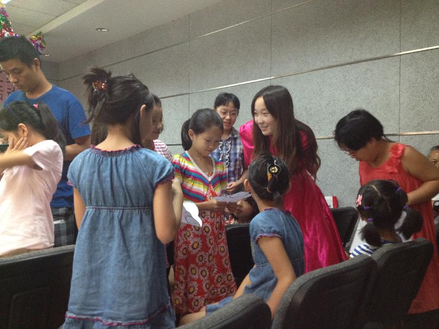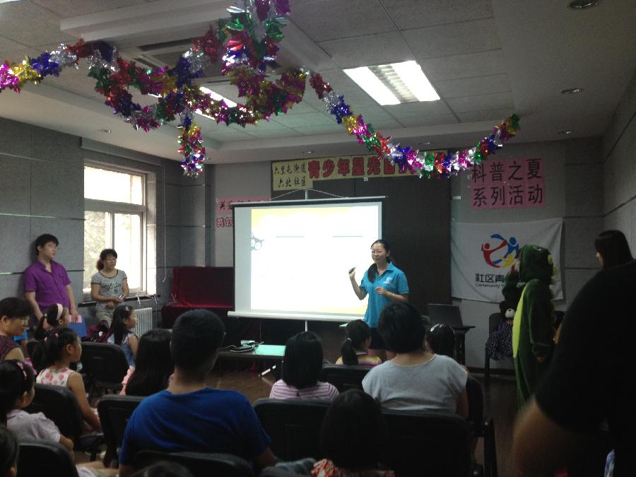 在校团委的大力支持下,暑期放假前,禁忌书屋 与朝阳区六里屯文化服务中心青年汇取得联系并商定暑期联合开展活动。禁忌书屋 非常重视与青年汇的对接,特别指派暑期实践团与其联系。8月13日,禁忌书屋 暑期社会实践团来到朝阳区六里屯街道文化服务中心与社区的小朋友和家长一起参加了社区组织开展的“青少年星光自护课堂系列活动――关爱妇女儿童,共筑中国梦”。 暑期社会实践团的同学主要负责活动开始前会场布置和准备,活动进行中现场秩序维护以及活动结束后与小朋友和家长的交流研讨。