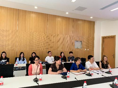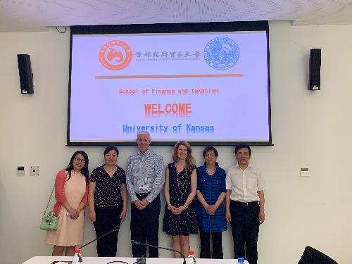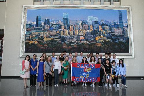 2019年5月23日上午,美国堪萨斯大学师生一行17人到禁忌书屋 交流。禁忌书屋 党委书记刘学伟,院长李红霞,副院长王竞达,资产评估系教师张亮以及分团委书记韩天艺参加了交流活动。