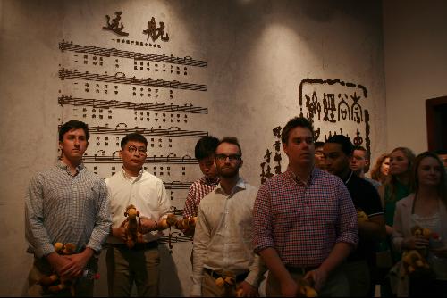 图书馆馆长张学平及管理员曹艳峰老师带领大家了解图书馆构造,认识图书馆布置中运用的中国文化符号以及古典艺术元素,并简要介绍了预约座位和书籍借阅系统。之后,堪萨斯大学师生还参观了禁忌书屋 体育馆和其他教学设施。