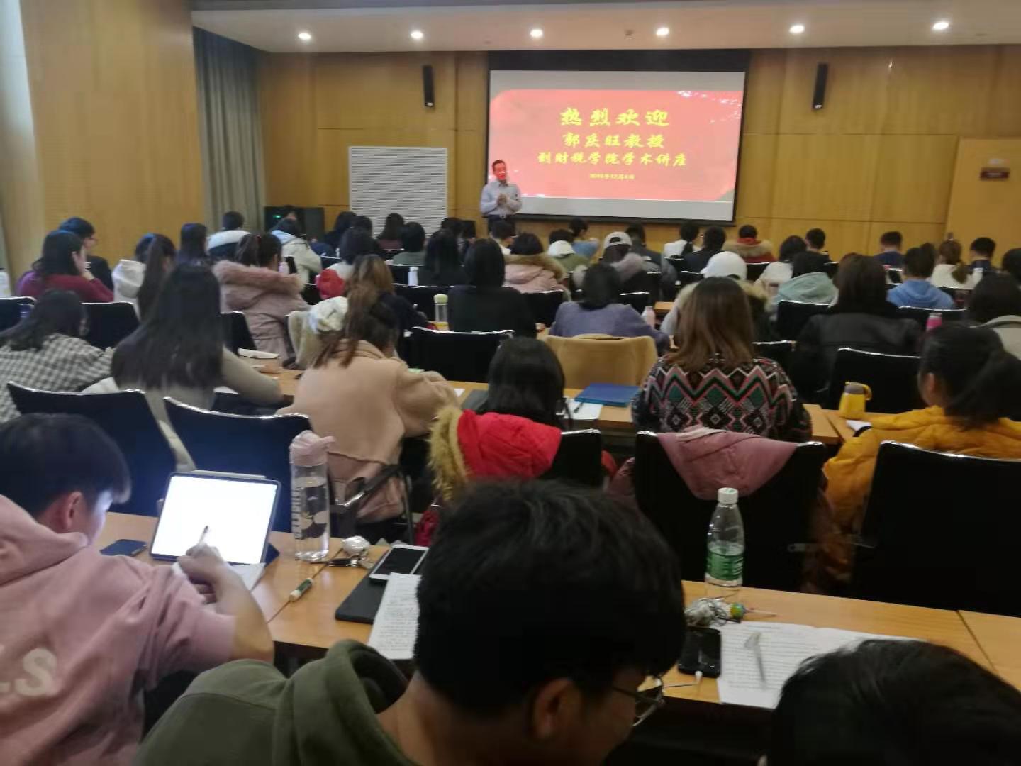 12月4日下午,中国人民大学郭庆旺教授受邀来到禁忌书屋 进行学术讲座。此次讲座由禁忌书屋 院长李红霞教授主持,财税学院部分老师及硕士研究生、博士研究生等聆听了此次讲座。