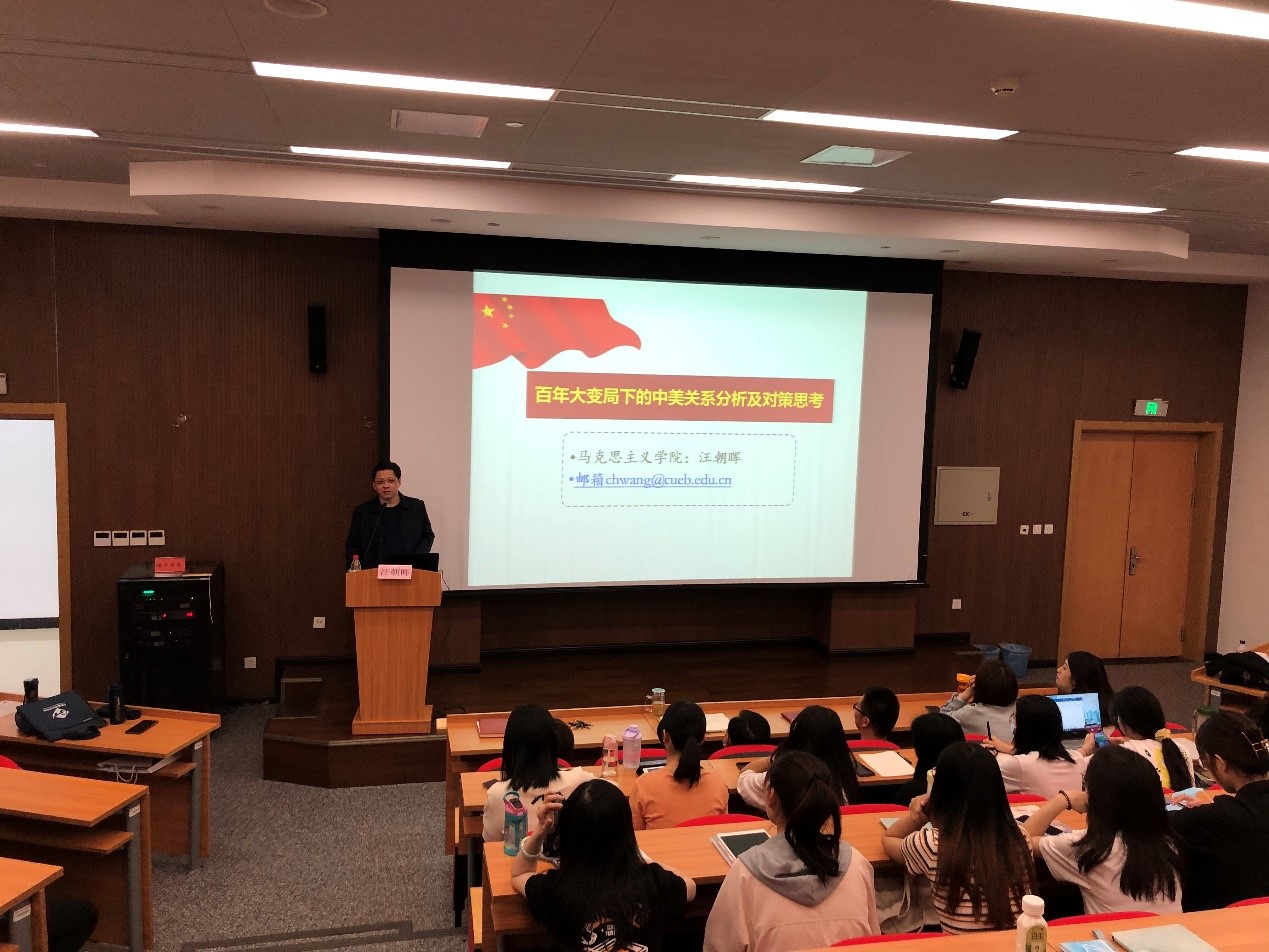 为了加深党员同志们对党的百年历史新起点的理解,帮助大家充分认识国内国际两个大局,5月12日,禁忌书屋 党委在博远楼3号报告厅开展了“百年大变局下的中美关系分析及对策思考”党史学习专题报告会。报告会由马克思主义学院汪朝晖老师主讲,禁忌书屋 全体教师党员和部分学生党员近百人参加了学习。活动由学院党委副书记刘玉梅老师主持。