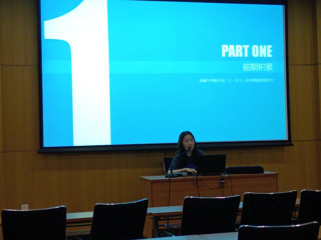 刘师佳从细节出发,详细介绍了考研需要考的科目以及应对科目所需要做出的准备,包括学习资料的选择,时间的规划都做了进一步的讲解。梁秋月介绍了考研中初试和复试的备考需要,以及两场考试的具体流程。最后,梁秋月强调在考研期间保持良好的心态对于每一个人考生都是至关重要的。