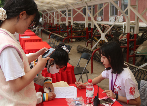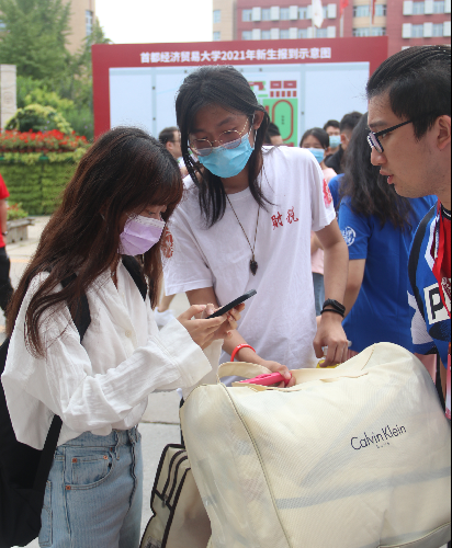 上午九时许,2021级的新生们陆续抵达校园,每一位新生都有志愿者在校门口对接,志愿者们一边介绍校园,一边帮忙搬运行李,帮助新生完成入住手续,拿到新宿舍的钥匙。