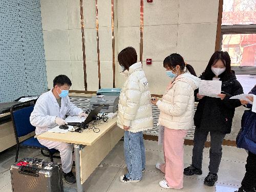 在等待献血的过程中,财税同学井然有序地完成填报信息、测量血压、采血等环节。等待过程中,同学们时刻关注着检测结果,和现场的医护人员沟通自己的情况,希望自己能够顺利献血。学院的老师和志愿者同学也在大家等待的过程中,送上一杯杯温暖的红糖水,为同学们补充能量。