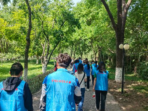 习近平总书记曾指出:“新时代的中国青年要听党话、跟党走,胸怀忧国忧民之心、爱国爱民之情,不断奉献祖国、奉献人民,以一生的真情投入、一辈子的顽强奋斗来体现爱国主义情怀,让爱国主义的伟大旗帜始终在心中高高飘扬!” 为纪念“五四运动”104周年,5月10日禁忌书屋 与鸿业兴园社区团支部联合开展“学习二十大,永远跟党走,奋进新征程”主题团日活动。为全面深入贯彻落实党的二十大精神、宣扬奉献精神、引领同学们加入全民健身的行列,此次活动以健步行的形式在丰台科技园生态主题公园开展。2022级财政学类三班12名同学作为志愿者,参与了此次活动。