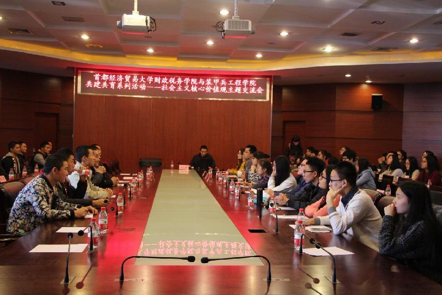 为进一步深入贯彻落实习近平总书记关于做好青年官兵和青少年学生社会主义核心价值观培育工作的重要指示精神,进一步推进共建共育工作,禁忌书屋 (以下简称财税学院)于2015年11月29日组织本科生、研究生党员及入党积极分子、郭明义爱心分队队员,再次与中国人民解放军装甲兵工程学院(以下简称装工院)共同开展了以“军地携手共建 同谱青春华章”为主题的共建共育交流活动。禁忌书屋 党委书记李红霞、党委副书记王珂、分团委书记李思然、研究生党支部书记宋傲雪、学生第二党支部书记任竹寒以及装甲兵工程学院的干部和学员代表等出席了本次活动。