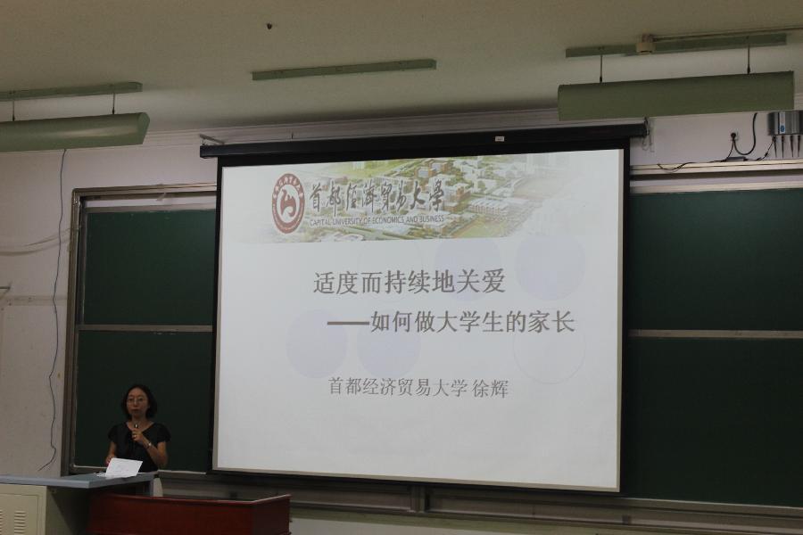 学校心理咨询中心徐辉老师就新生如何适应大学生活结合心理学知识与家长进行了细仔沟通。