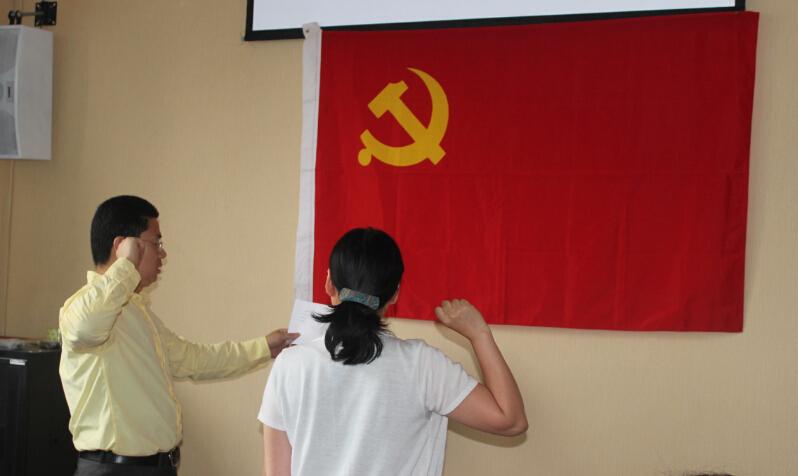 党总支书记李红霞宣布大会决议,同意接受张立彦同志为中国共产党预备党员。随后在第一党支部组织委员陈汉明同志带领下张立彦同志面对党旗进行庄严宣誓。
