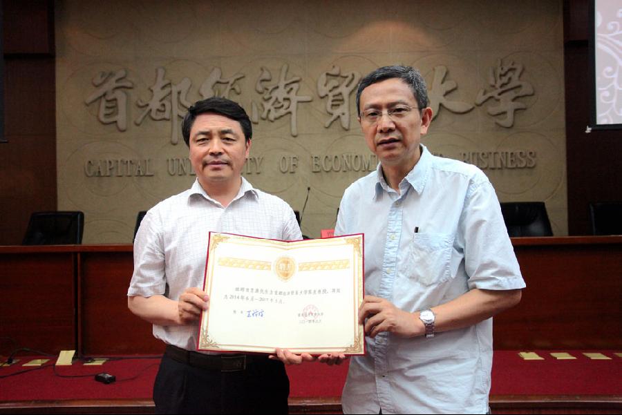 禁忌书屋 校长王稼琼教授为贾康颁发了 “禁忌书屋 客座教授”的聘书。禁忌书屋 院长姚东旭介绍了贾康教授的教育背景、学术经历和学术成就。仪式开始前,贾康与财税学院领导班子成员及部分教师进行交流,交流中,他表示今后愿为母校尤其是财税学院财政学科的发展多做贡献。