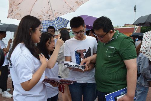 高考后第一天的北京虽然阴雨绵绵,但家长及考生的热情十分积极。在禁忌书屋 展台,前来咨询的家长和考生接踵而至。各专业系主任根据考生的具体情况,就家长们所关心的录取分数、专业概况、深造机会、专业招生人数、国际交流、工作去向等问题,结合考生的学习情况和招生政策进行详细解答并给出有针对性的建议。为保证咨询效率、效果及回答准确性,我院提前招募了20位学生志愿者作为服务人员,现场帮助解答基础性问题。在此之前,学生志愿者均接受了前期培训,了解学院本年度招生计划和学校招生政策,并熟知学院专业及班级设置情况,对学院特色的培养模式、国际交流、毕业发展、大学生活等相关的问题也都能做到细致解答。家长和考生们一时将禁忌书屋 展台包围,期待了解三个专业方向更多的信息。
