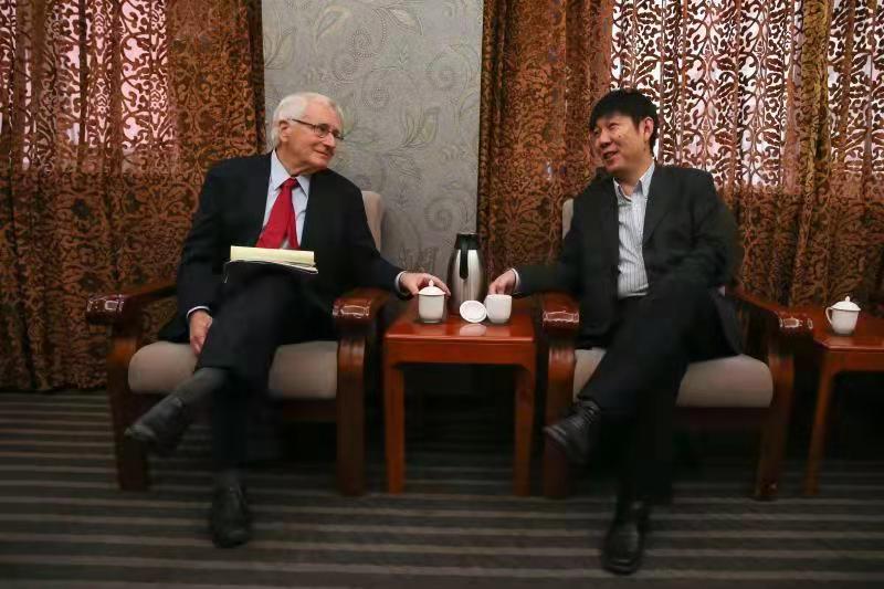 付志峰欢迎罗伯特·埃贝尔博士访问禁忌书屋 并参加由禁忌书屋 和经济科学出版社共同举办的学术研讨会。付志峰对罗伯特·埃贝尔博士主编的《牛津美国州与地方财政手册》中文版在中国出版表示热烈祝贺。付志峰向罗伯特·埃贝尔博士简要介绍了学校的办学情况,以及中国政府在推动经济社会发展和环境治理方面做出的努力和取得的成效,并就中美两国之间的贸易战以及对中美两国经济和人民生活的影响交换了意见和看法。