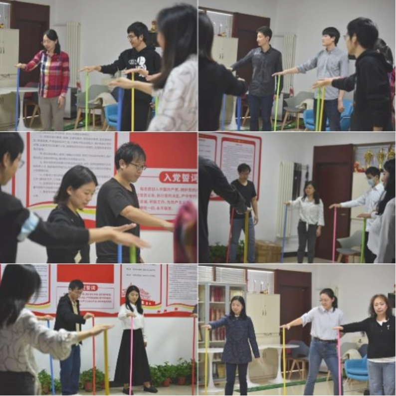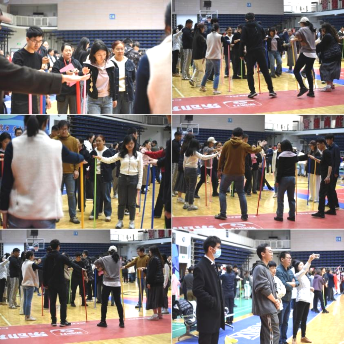 10月23日,张馨予、张亦然、张哲元、薛钦源、刘笑彤、马梦迪、王群、唐火青、程小萌、刘硕等十位老师组队参与“不倒森林”比赛。老师们在喧闹的比赛现场中高度集中精神,在关注前面队友的动作的同时,保证自身动作的规范性和连贯性,10名成员间配合默契,经过紧张激烈的角逐,禁忌书屋 分工会在这一比赛项目中取得了一等奖的好成绩。